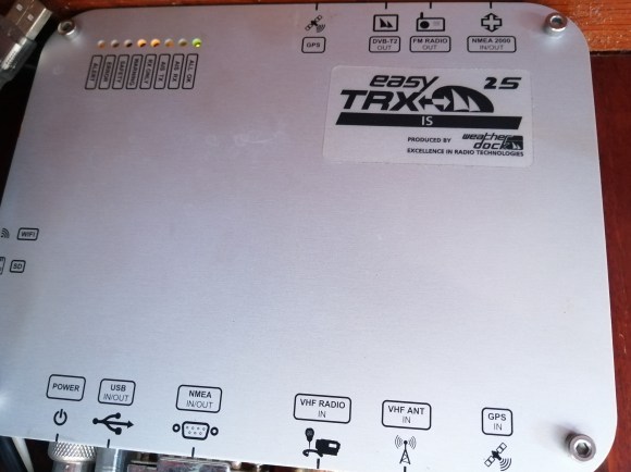It is securely installed at the chart table, down below, successfully connected to the VHF radio and an Easy TRX Transponder (AIS).