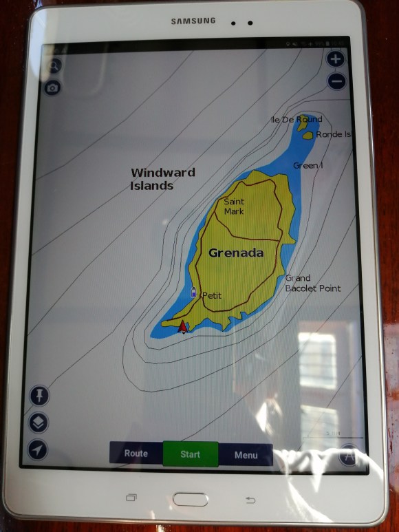 When we are navigating close to shore or into a harbor/anchorage we have charts on a Samsung tablet that we use in the cockpit. This is also handy, as it provides redundancy if our chartplotter ever conks out on us.
