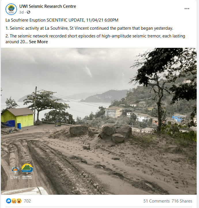 Many of these people who have chosen to stay behind are recording the events with their mobile phones and sharing videos and photos on social media outlets. Through these accounts, we are able to see the full destruction of La Soufriere. Homes are damaged. Roads and bridges are gone. Land and farms are destroyed. It’s devastating.